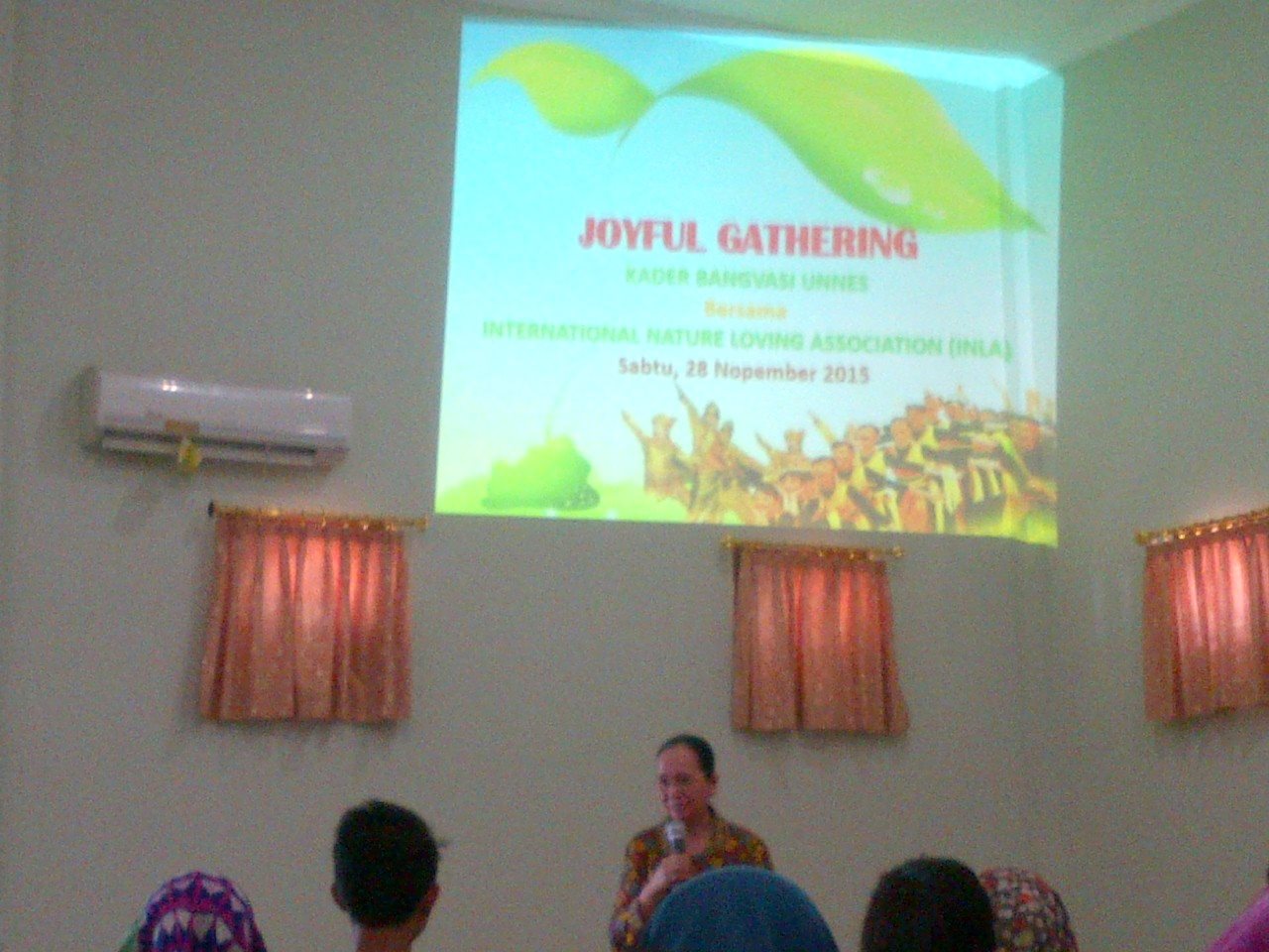 Acara kemudian dilanjutkan dengan senam yang diiringi lagu penyemangat cinta lingkungan agar menggugah kesadaran peserta akan konservasi alam. “Ternyata lagu yang dipadukan gerakan pun mampu mengingatkan kita terhadap kepedulian alam,” ungkap Khumairoh, salah satu peserta Joyful Gathering dengan INLA, Sabtu (28/11).