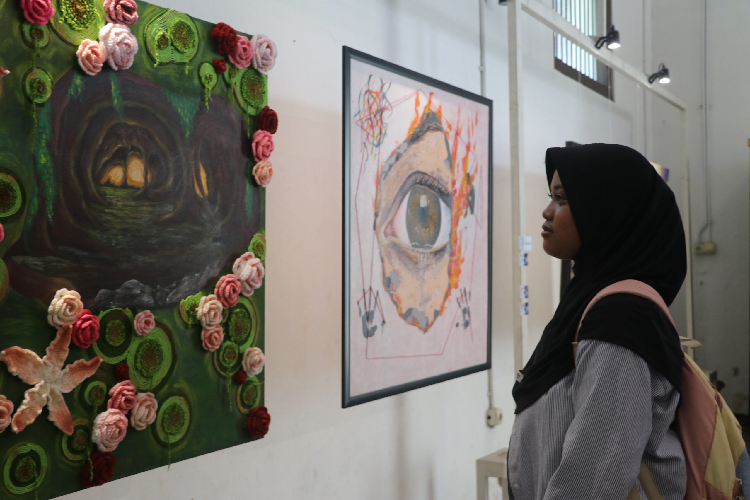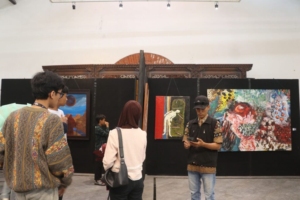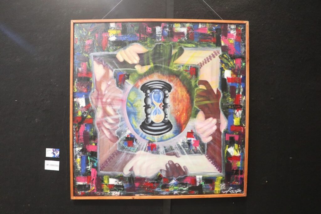 Terpajang lukisan berjudul “Merangkai Asa dalam Semesta Fana” oleh Arif Fiyanto yang menggambarkan harapan manusia di tengah kerapuhan, Minggu (30/11/2025) [Nadya/BP2M]