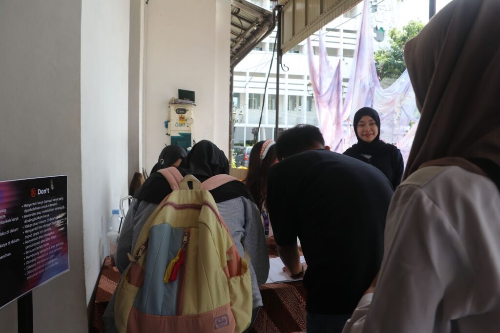 Sebelum memasuki ruang pameran para pengunjung bergantian melakukan presensi di atas kertas putih, Minggu (30/11/2025) [Tia/BP2M]