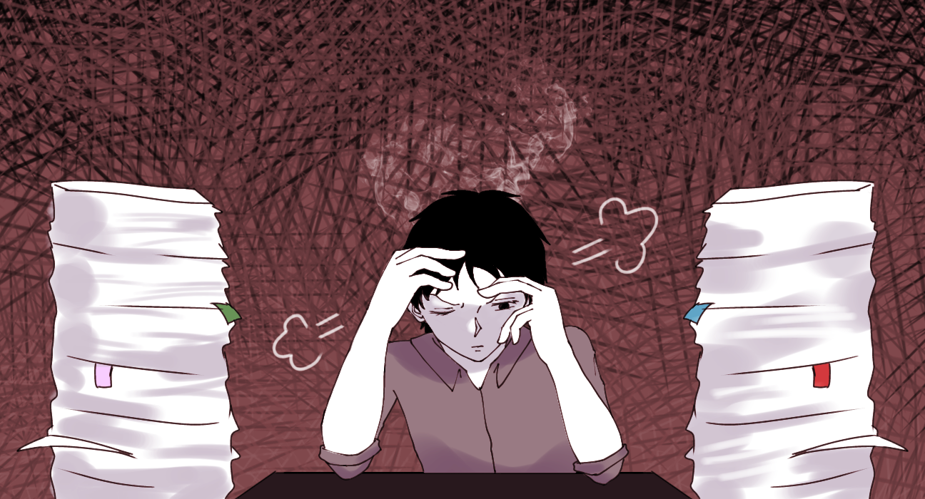 Ilustrasi mahasiswa yang terjebak burnout akibat tugas [Hanna/BP2M]